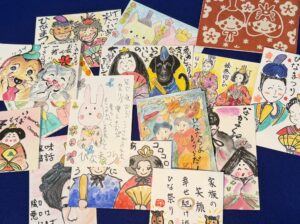ご応募いただいた「絵手紙」は、新春企画展「雛祭」で展示します。